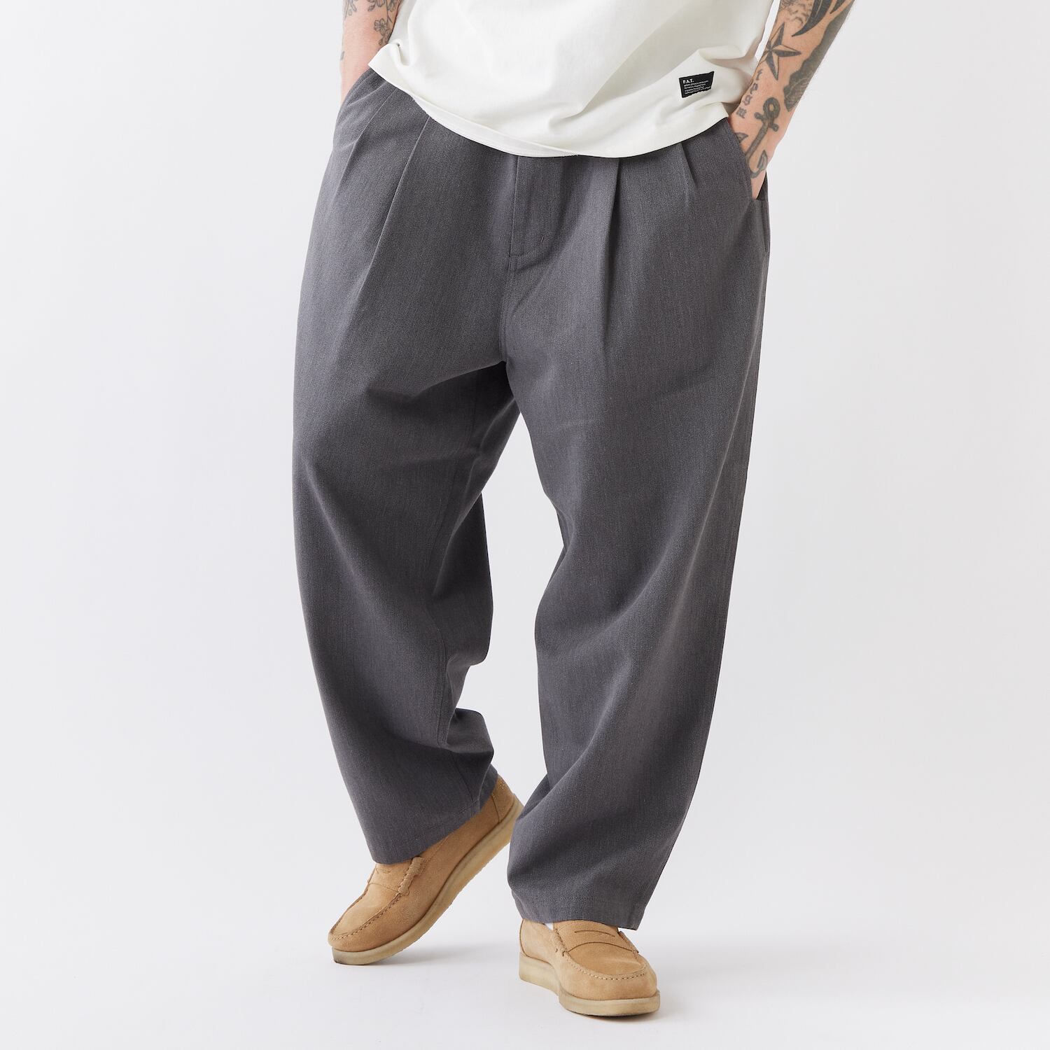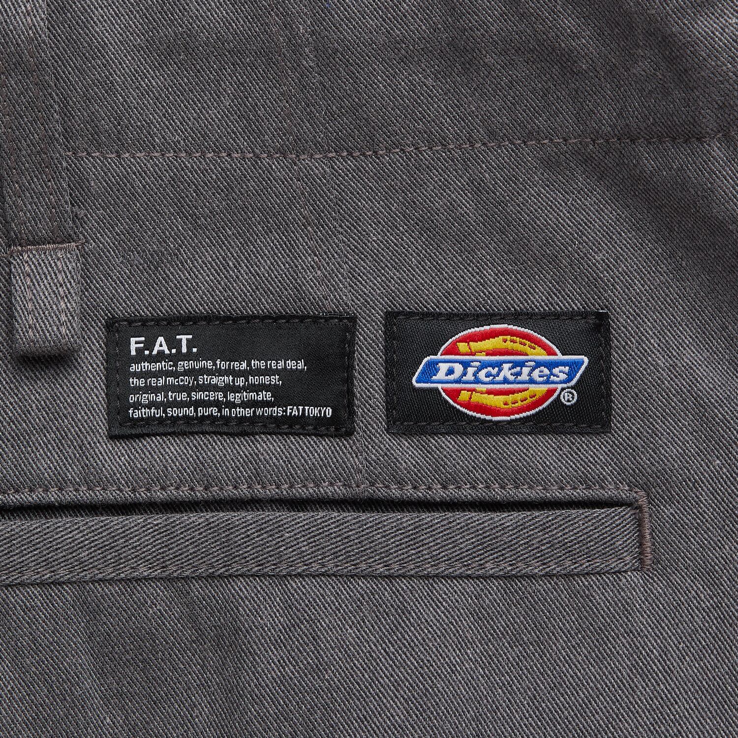 F.A.T.よりDickiesとのコラボレーションによるワイドパンツが入荷。股上を深くし、渡りを広くとることによりヒップから膝にかけてボリュームを持たせたワイドテーパードシルエットが魅力。穿き心地の良さはもちろんのこと、ダブル仕様のベルトループにシューレースを通すことで、ベルト代わりにウエスト調整可能なギミックも見逃せない。バックのDickiesとF.A.T.のブランドネームがさり気なくアクセントになってくれます。是非。