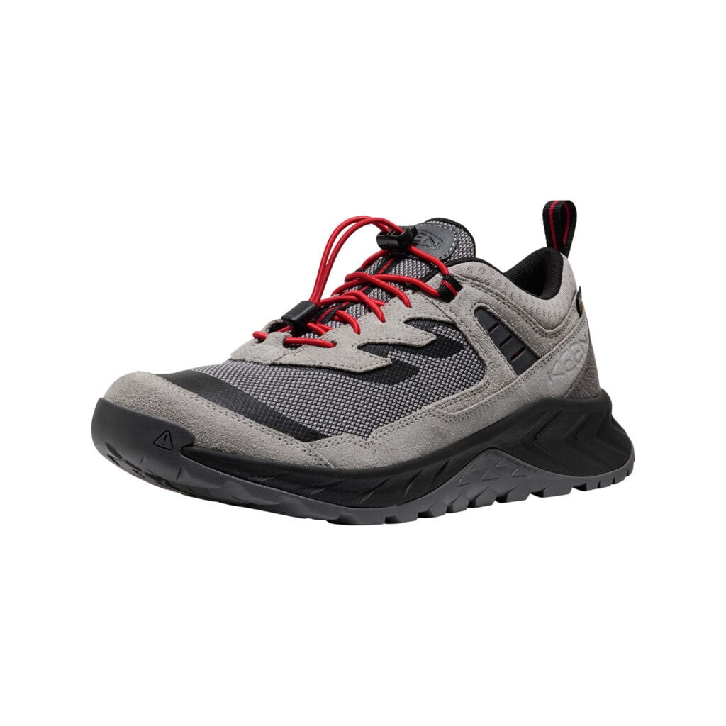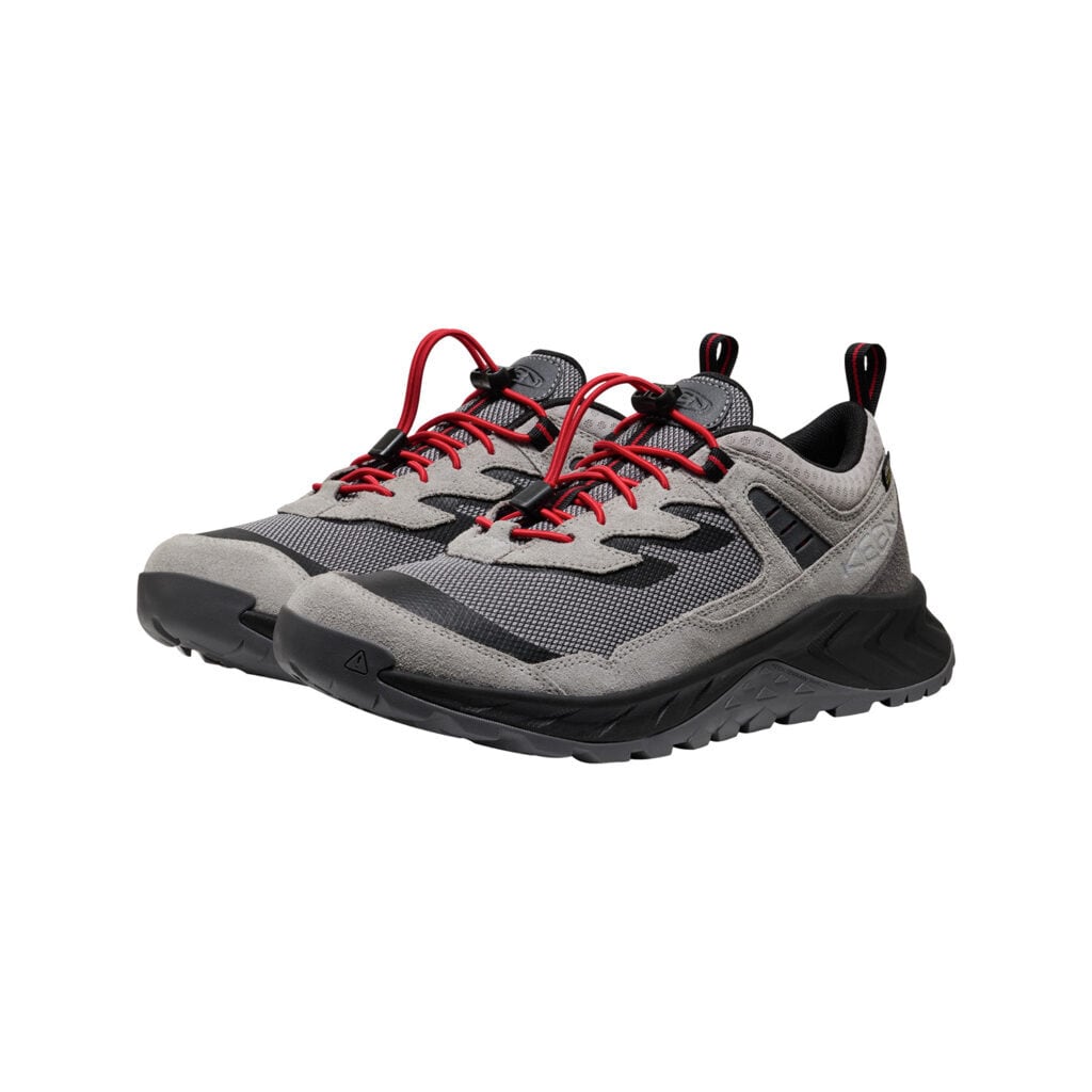 BAL×KEENのスペシャルコラボ、本コラボレーションでは、ハイパフォーマンストレイルシューズ HIGHTRAIL SP WP(ハイトレイル エスピー ウォータープルーフ)をベースに採用。クッション性に優れたソールユニットと〈KEEN〉の最先端テクノロジーを掛け合わせ、ライトトレッキングから日常まで幅広く対応する1足が誕生。アッパーには通気性抜群のパフォーマンスメッシュと天然スエードを組み合わせ、さらに独自の防水透湿素材 KEEN.DRYを搭載。天候を問わず機能を発揮する。また着脱が容易なバンジーシューレースも、利便性を高める仕様に。仕上げは〈bal〉のシグネチャーカラーパターン。アウトドアの機能性と都会的なムードを併せ持つフットウェアに仕上がったまさにスペシャルなアイテムとなっています。