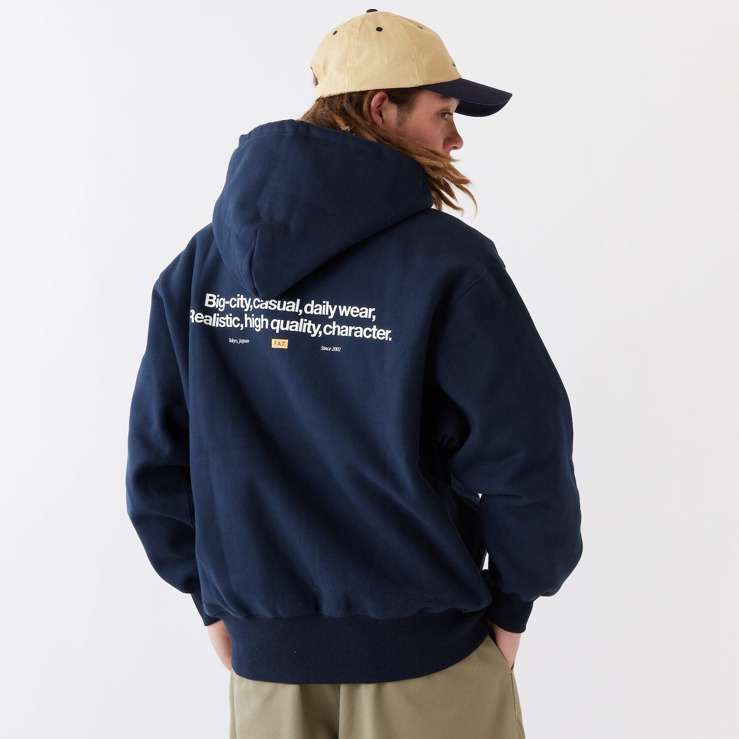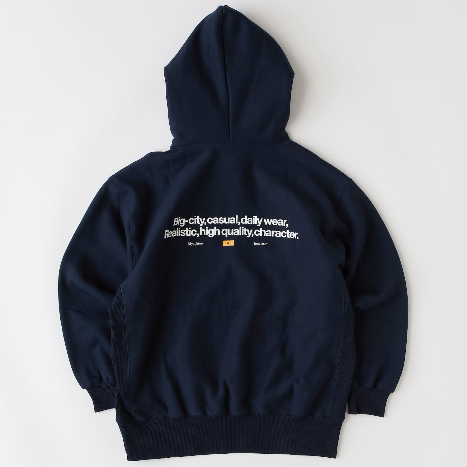 F.A.T.より胸のシンプルなロゴ刺繍とバックプリントが印象的なスウェットパーカーがリリース。オリジナルで編み立てたT/C裏毛起毛素材は、程よい肉感で着心地の良さが特徴的。アメリカンオーセンティックを感じさせる縫製、生地方向やサイドパネルなど細部にまでこだわったアイテム。あらゆるコーディネートに欠かせないオールマイティーな1枚。ポケットのブランドネームも程よいアクセントになっています。是非。
