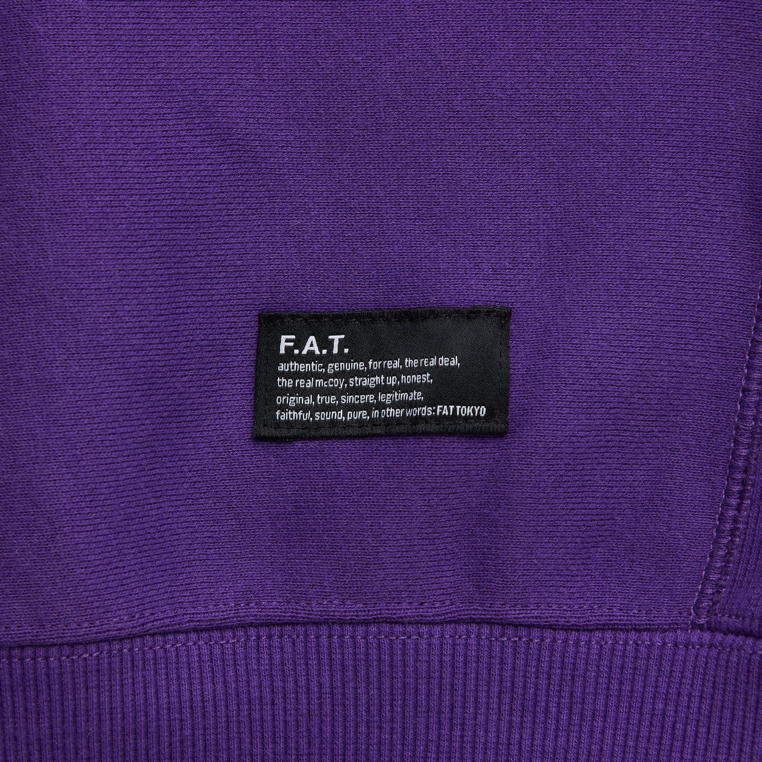 F.A.T.よりフロント・バックのロゴ刺繍が印象的なスウェットシャツがリリース。オリジナルで編み立てたT/C裏毛起毛素材は、程よい肉感で着心地の良さが特徴的。アメリカンオーセンティックを感じさせる縫製、生地方向やサイドパネルなど細部にまでこだわったアイテム。あらゆるコーディネートに欠かせないオールマイティーな1枚。裾のブランドネームも程よいアクセントになっています。是非。