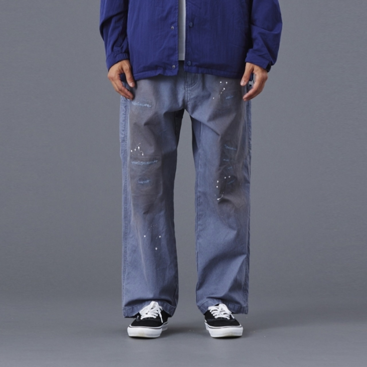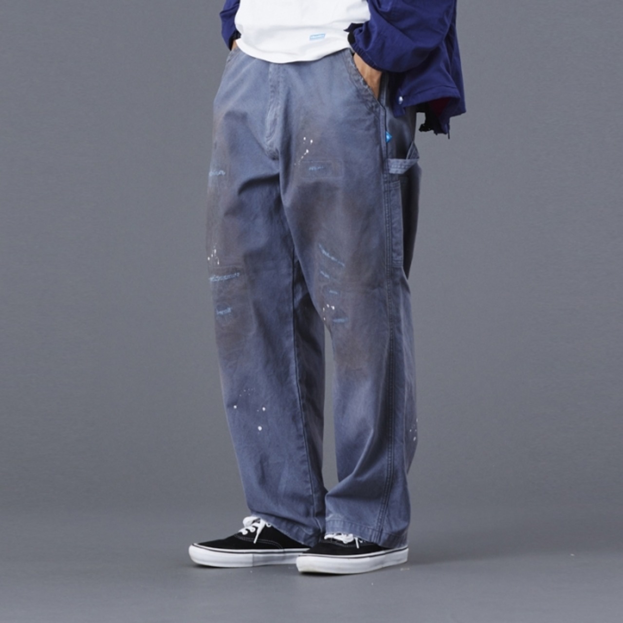 Liberaidersより厚手のしっかりとしたキャンバス素材を使用したワークパンツがリリース。パンツ本体にはダメージ&リペア加工とペンキによる汚し加工などで、いい雰囲気の味が出ている一本に 仕上げています。リアルな加工を楽しめる一本、同じく加工が効いたトップスとのスタイリングが お勧めな一本です。是非。
