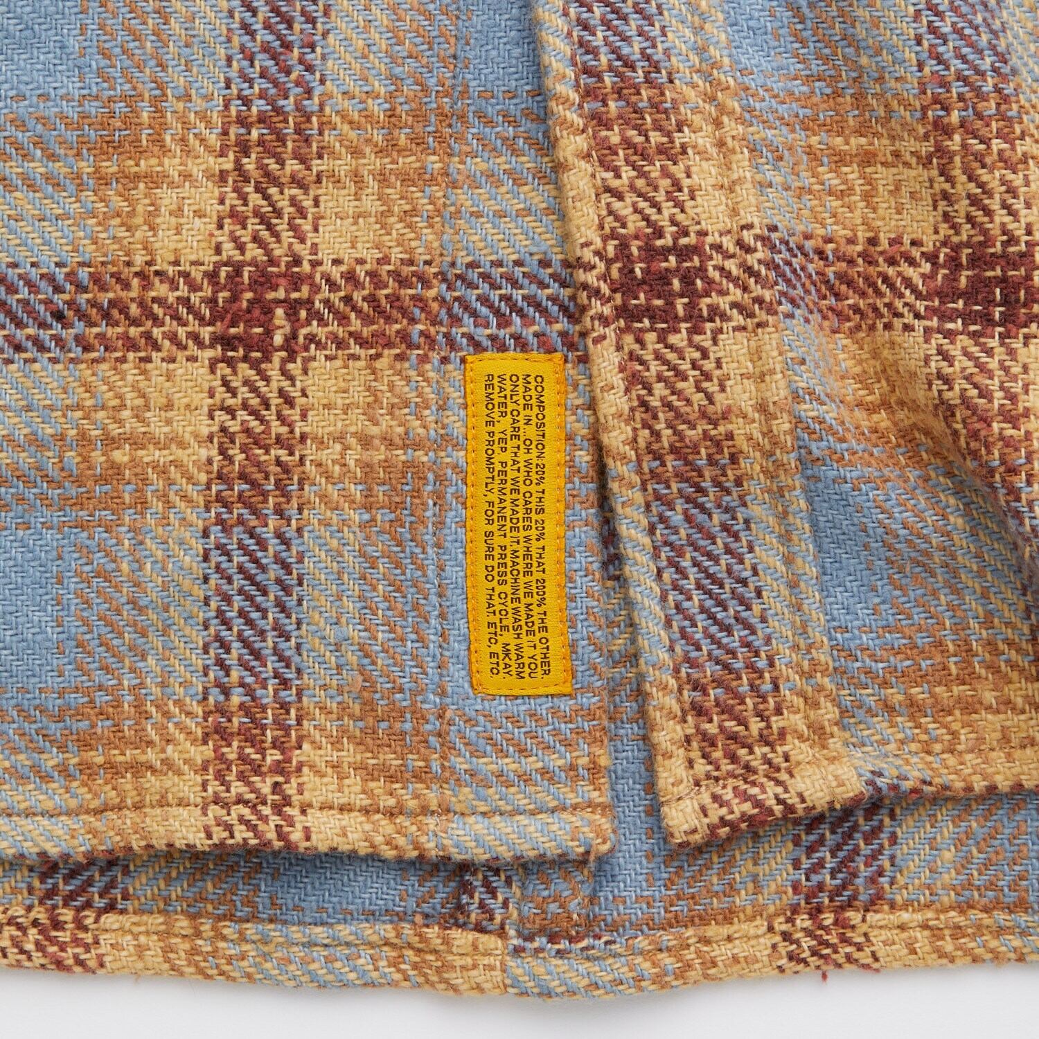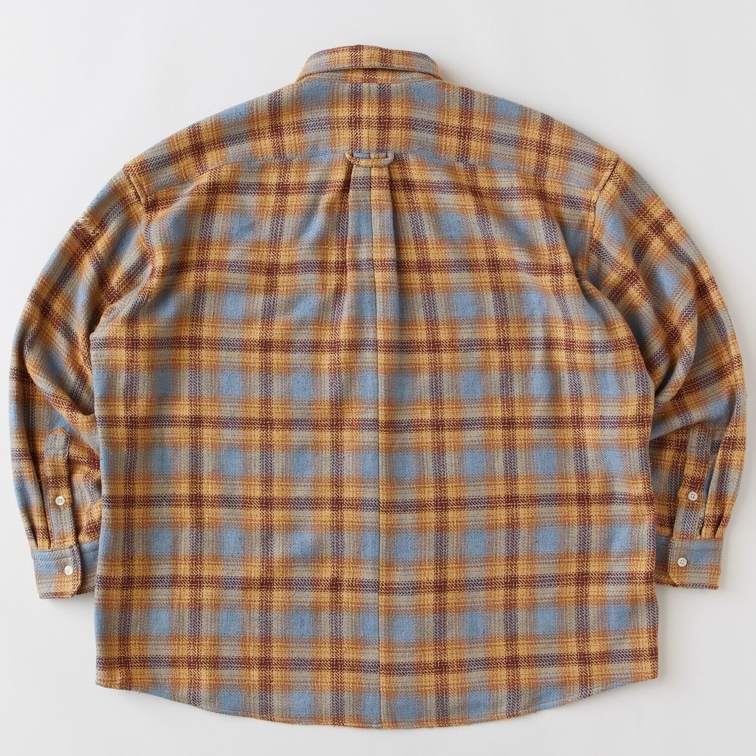 F.A.T.より独特なネップ感が印象的なチェック素材を使用したネルシャツがリリース。通常よりも身幅・肩幅にゆとりをもたせたBIGシルエットやセンターバックを切替えた独特な仕様で、ルーズになりすぎないレングスや袖まわりはボリュームのあるボトムスを合わせていつもとは違うカジュアルコーディネートを楽しみたい。袖のロゴ刺繍や裾のネームも程よいアクセントに。是非。