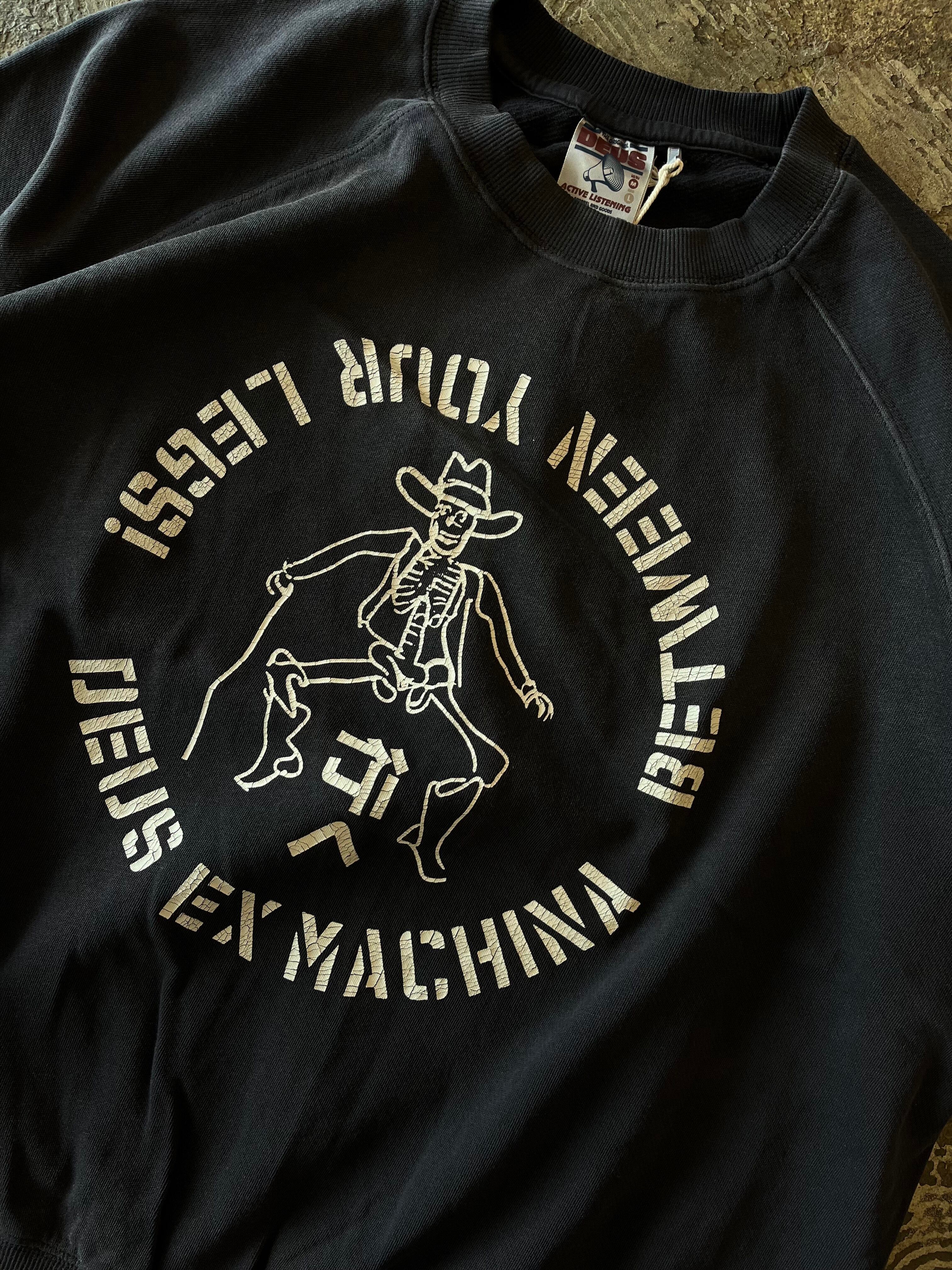 DEUS EX MACHINAより2026SS立ち上がりのアイテム1発目が入荷です。薄手裏起毛の半袖スエットになります。切りっぱなしの袖に、フェードかがった色合い。クラックの入った遊び心あるプリントが雰囲気をあげてくれます。身幅ワイドの着丈短めのシルエット。この時期はネルシャツやロンT、サーマルとレイヤードが楽しめます。是非お試しくださいませ。