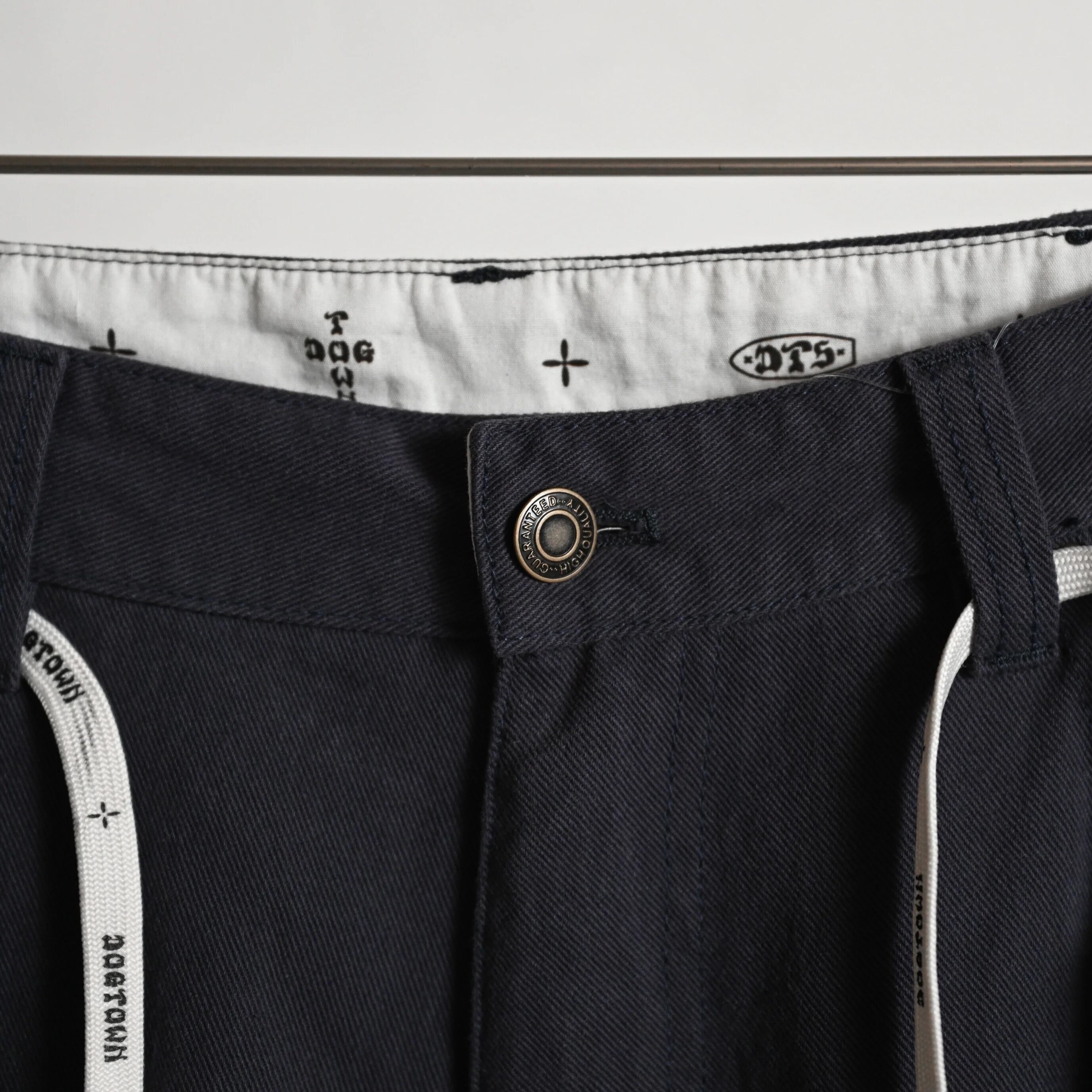 DOG TOWNよりとてもとてもグッドなパンツが入荷しました。ツイルの畝がやや太めのバギー型5ポケット。中肉で柔らかいので稼働がスムーズでアクティブに着用できます。スケボーにもグッド。通年着用できる素材感で、ブランドロゴ入りシューレースが付属でつきます。皆さんこれは本当に一回試してみてください。どなた様にもオススメできるデイリーなパンツです。是非。