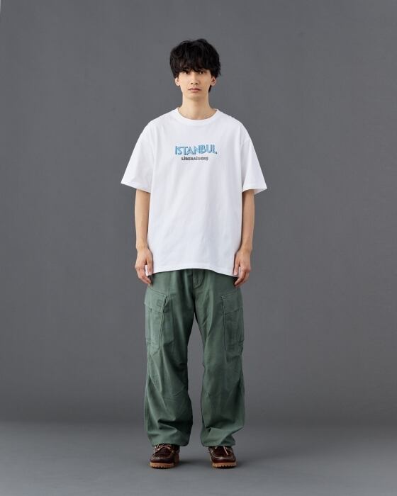Liberaidersより6.2ozの天竺を使用したS/S TEETシャツがリリース。全体を起毛させ、色を退色させるフロスト加工を施しており、肌触りが良くヴィンテージライクな仕上がりになっています。今シーズンのロケーションであるイスタンブールのモスクの手書きグラフィックがプリントされています。是非。